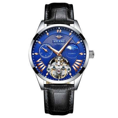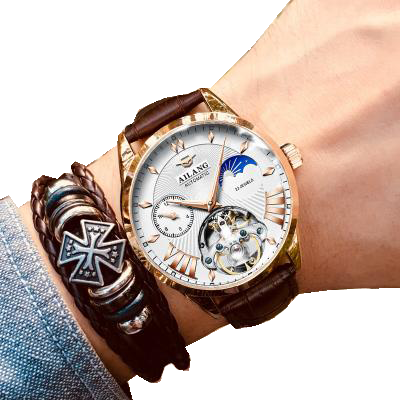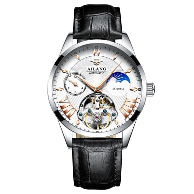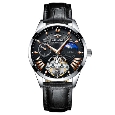The Luxury Tourbillon Automatic Watch is made of high-quality tourbillon mechanical self-winding movement. It has luminous hands with a moon phase and soft high-quality soft leather straps.