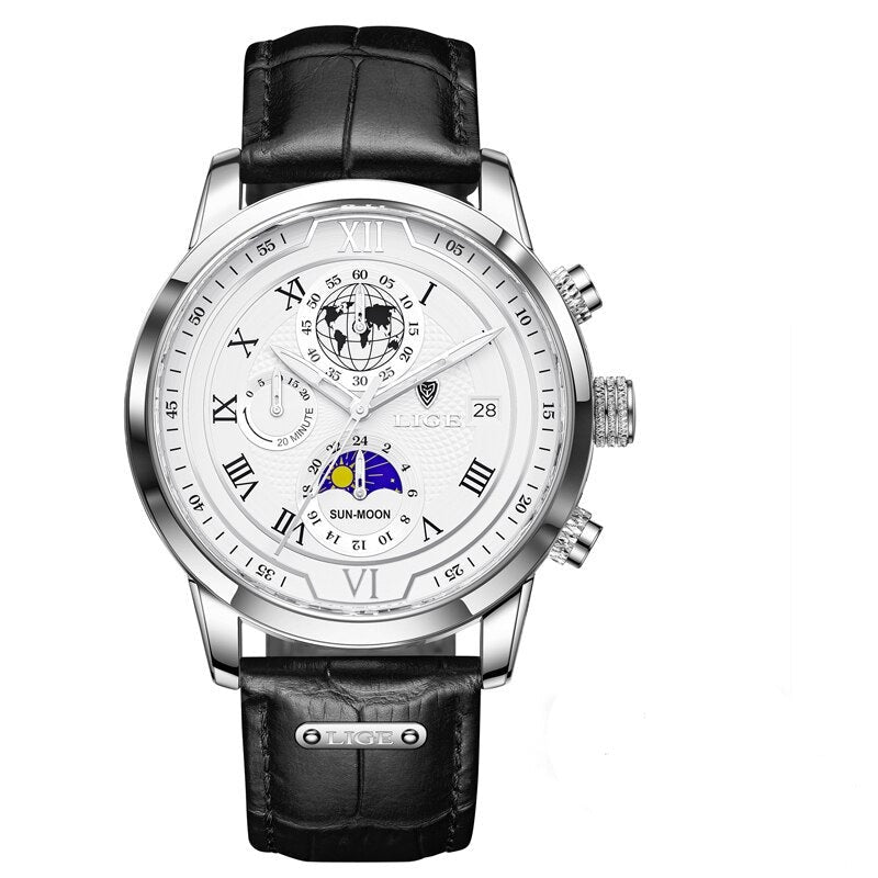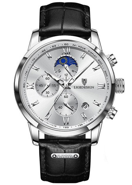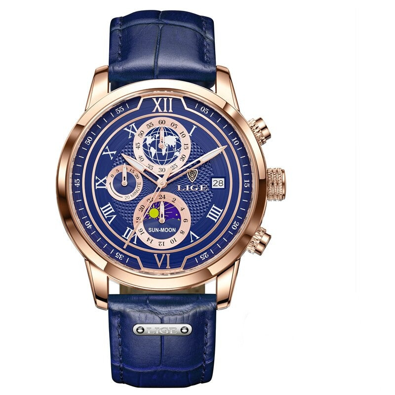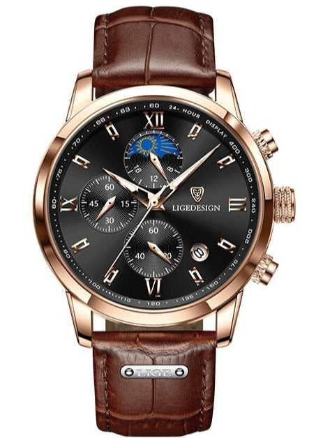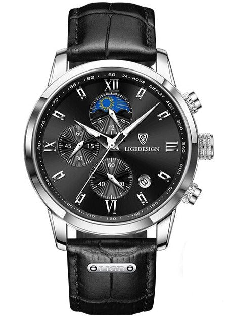 LIGE8974 is an elegant quartz watch designed for business professionals. Featuring a moon phase counter, it's an ideal blend of style and practicality, allowing users to stay on track and remain stylish at the same time. Reliably accurate and slim in design, it's the perfect choice for those looking to make a lasting impression.