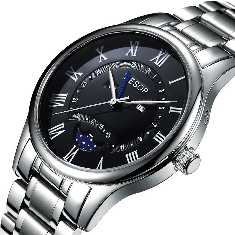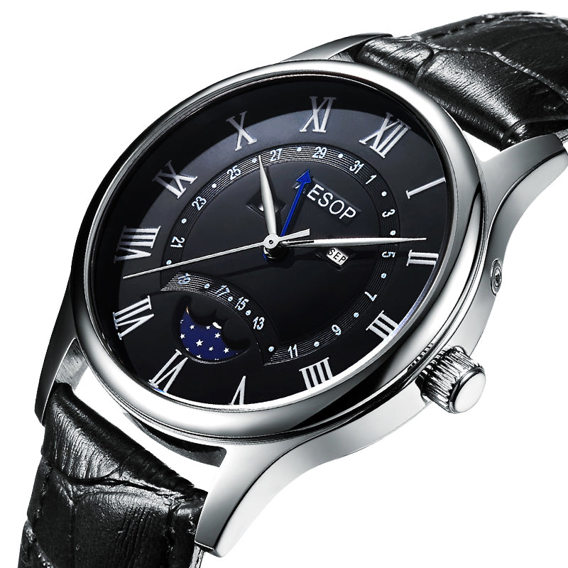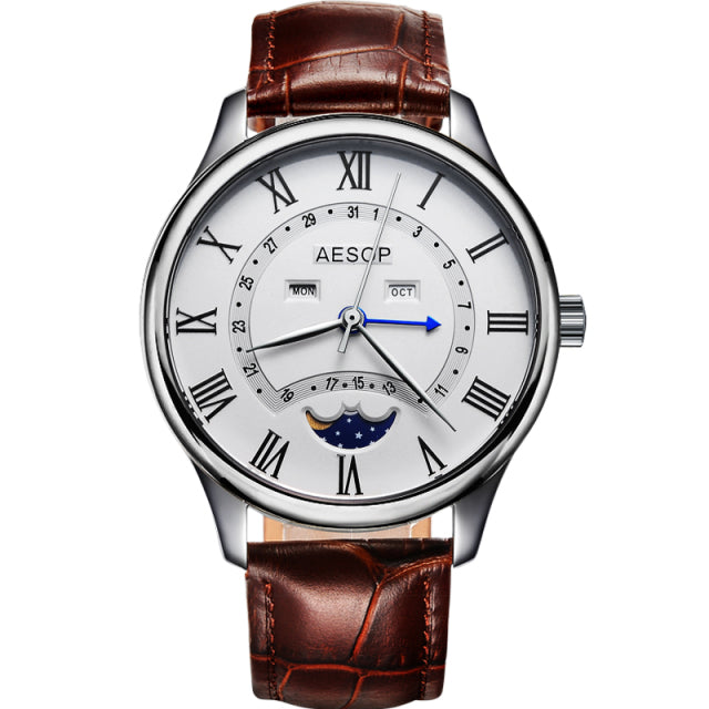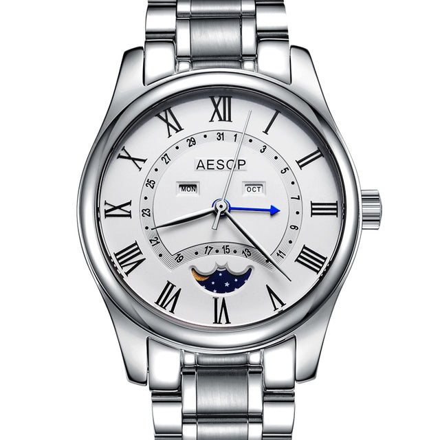 This men's watch features a classic design with a moon phase display that is sure to impress. Crafted with a high-quality, luxury brand, the watch is sure to be a timeless addition to any wardrobe. Featuring a flashy design and a reliable mechanism, it is a great choice for an accessory that will last for years.