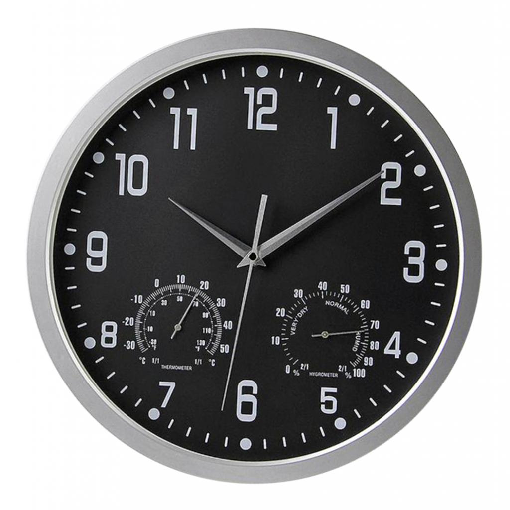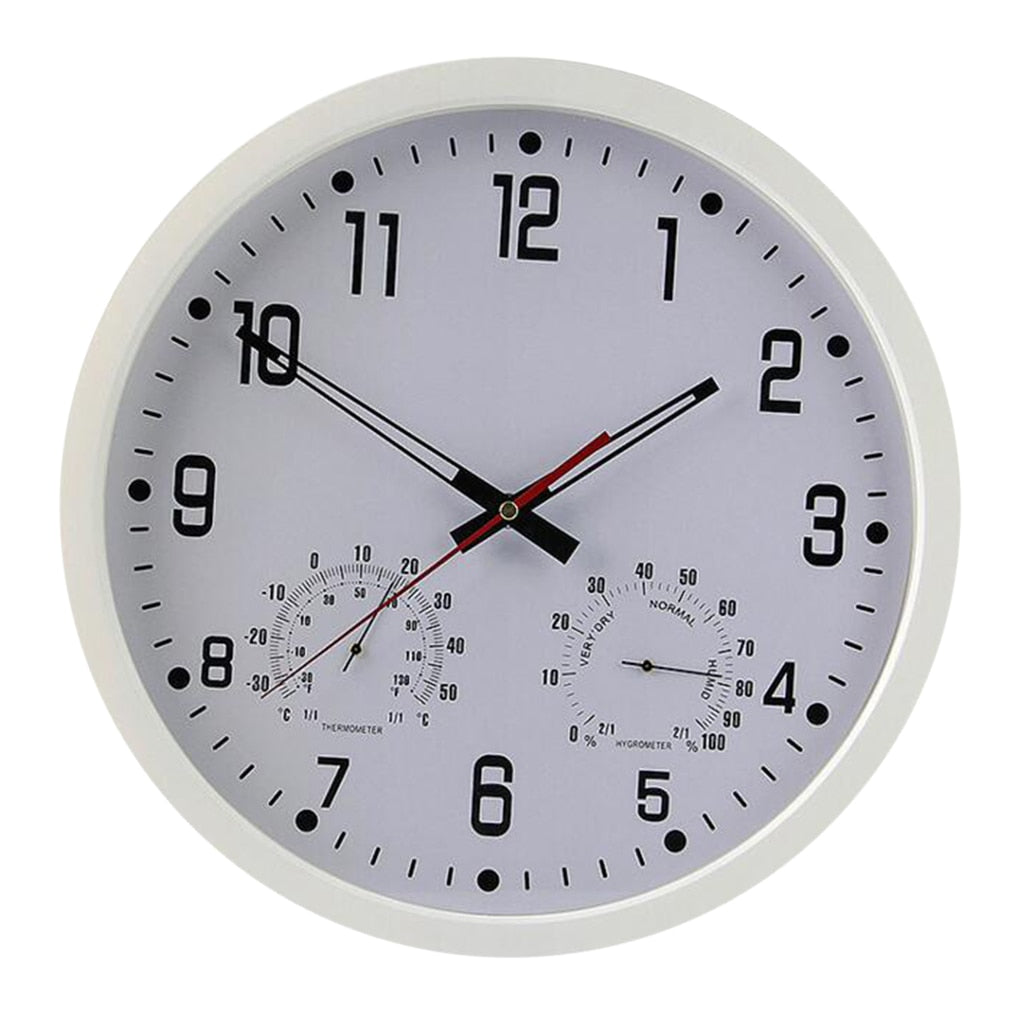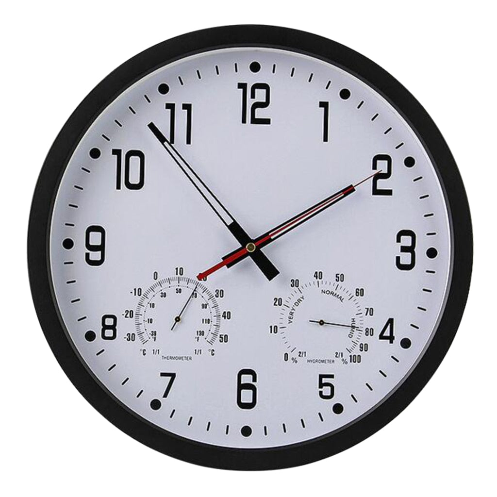 The wall clock has a humidity thermometer in a quartz movement. It has a round shape in different colors ideal for decorating any wall.