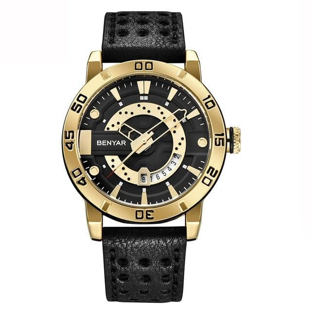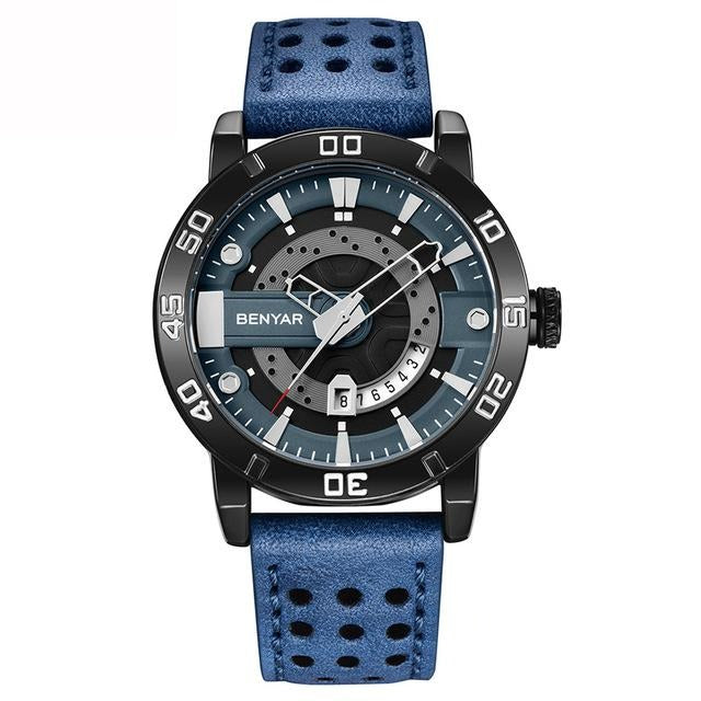 This waterproof square watch has a dial diameter of 43mm and a bandwidth of 22mm. It operates on a high-quality quartz movement with an auto-date complete calendar.