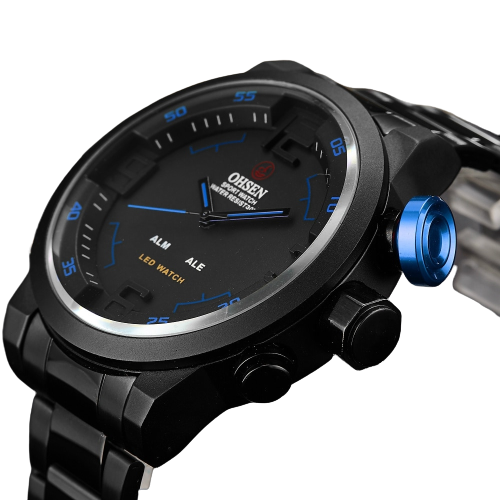 This full steel digital quartz watch from OHSEN Brand has it all. The striking blue-coloured design is both glamorous and flashy, making it perfect for any occasion. The quartz movement ensures accuracy and an adjustable band ensures a perfect fit. Splashproof and shock resistant, this watch is sure to last for many years.