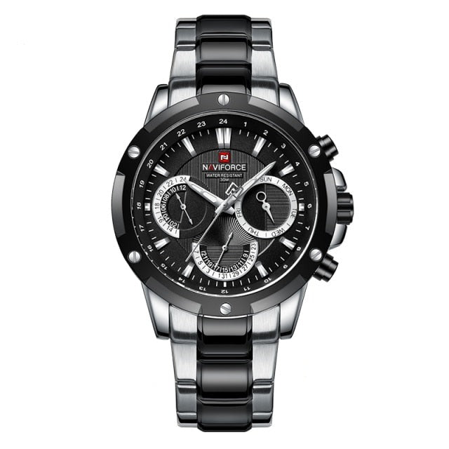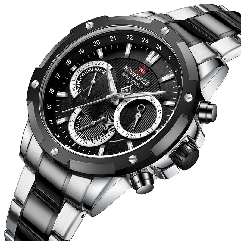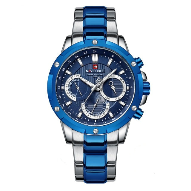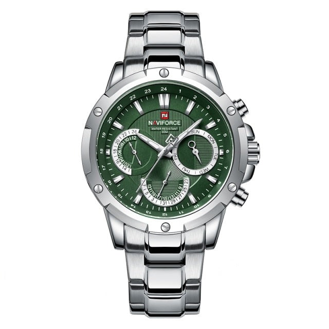 This new luxury top brand watch operates on a high-quality quartz movement. The watch has a well-polished stainless steel case with an auto-date complete calendar.