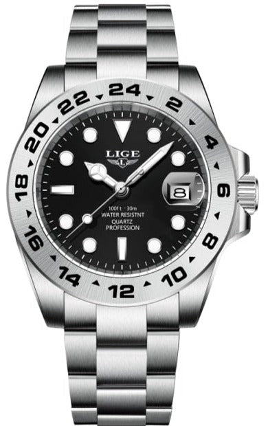 LIGE Waterproof Top Brand Luxury Watch is made of high-quality Japanese Quartz movement. It has an Auto date with a calendar, is waterproof and has a luminous face.