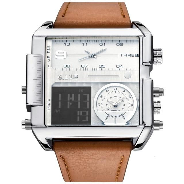 This stylish watch features multiple time zones and a highly accurate quartz movement. It's craftily designed with a durable stainless steel case and high-quality leather strap, providing a reliable, standout look. Perfect for international travellers, it helps you stay on top of different time zones quickly and easily.