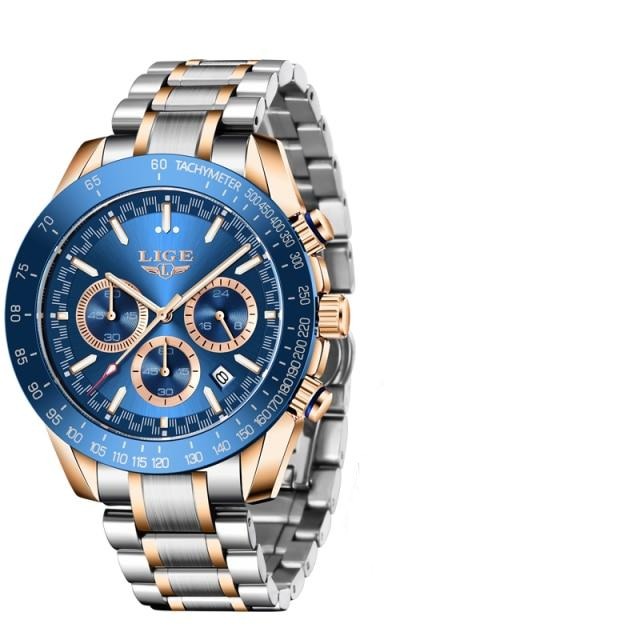 New Chronograph Men's Sport Watch is made of high-quality Japanese Movement. It has a dial diameter of 42mm and a bandwidth of 22mm. The sports watch had a water-resistant, shock-resistant and complete calendar with auto date.