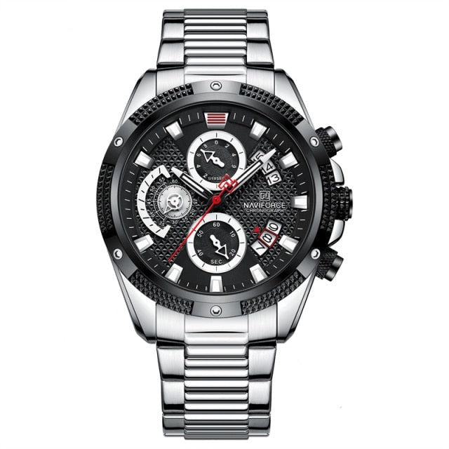 This new luxury stainless steel watch operates on high-quality quartz movement. The watch has luminous hands and an auto-date complete calendar.