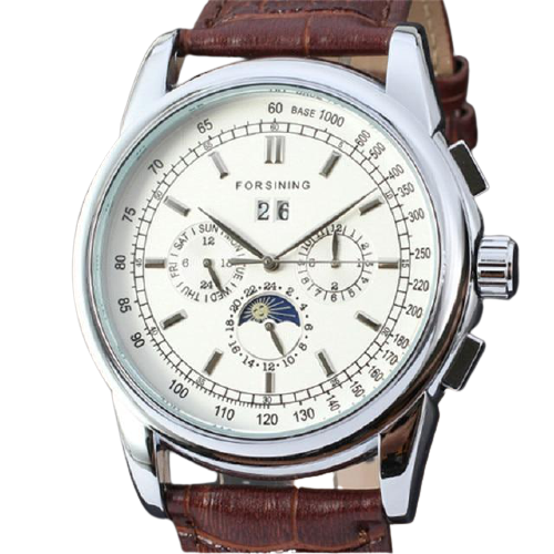 Our Moon Phase White Dial Watch offers a sleek and modern look along with reliable quality and a free shipping refund policy. Enjoy the convenience of feeling secure when you shop with us - let our watch bring an effortless style and stress-free purchase to your life.