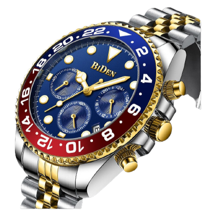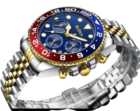 If you love a luxury gold watch, then this top-brand stainless steel with a gold strap is for you. The watch is operated by the best Japanese quartz movement. It has a dial diameter of 43mm and a bandwidth of 20mm. It also has an auto-date calendar.