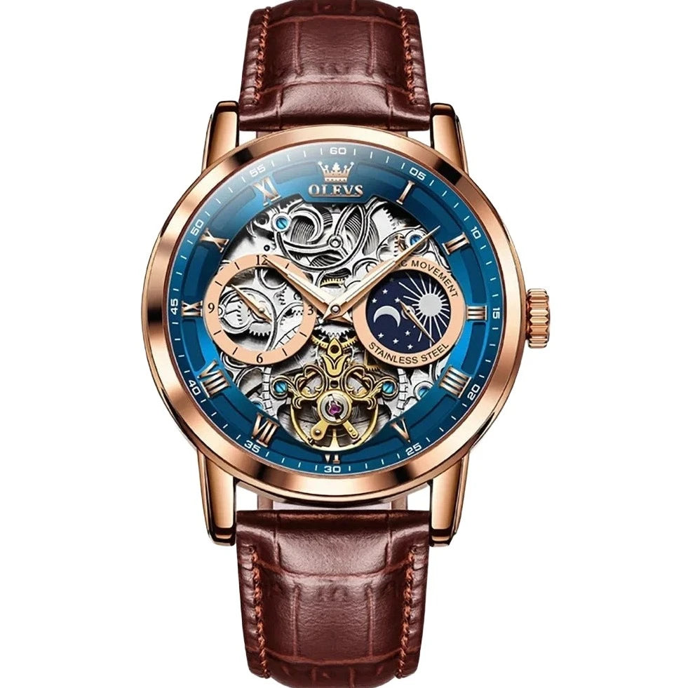 OLEVS 6670 Luxury Skeleton Automatic Mechanical Watch for Men | Leather Strap Timepiece