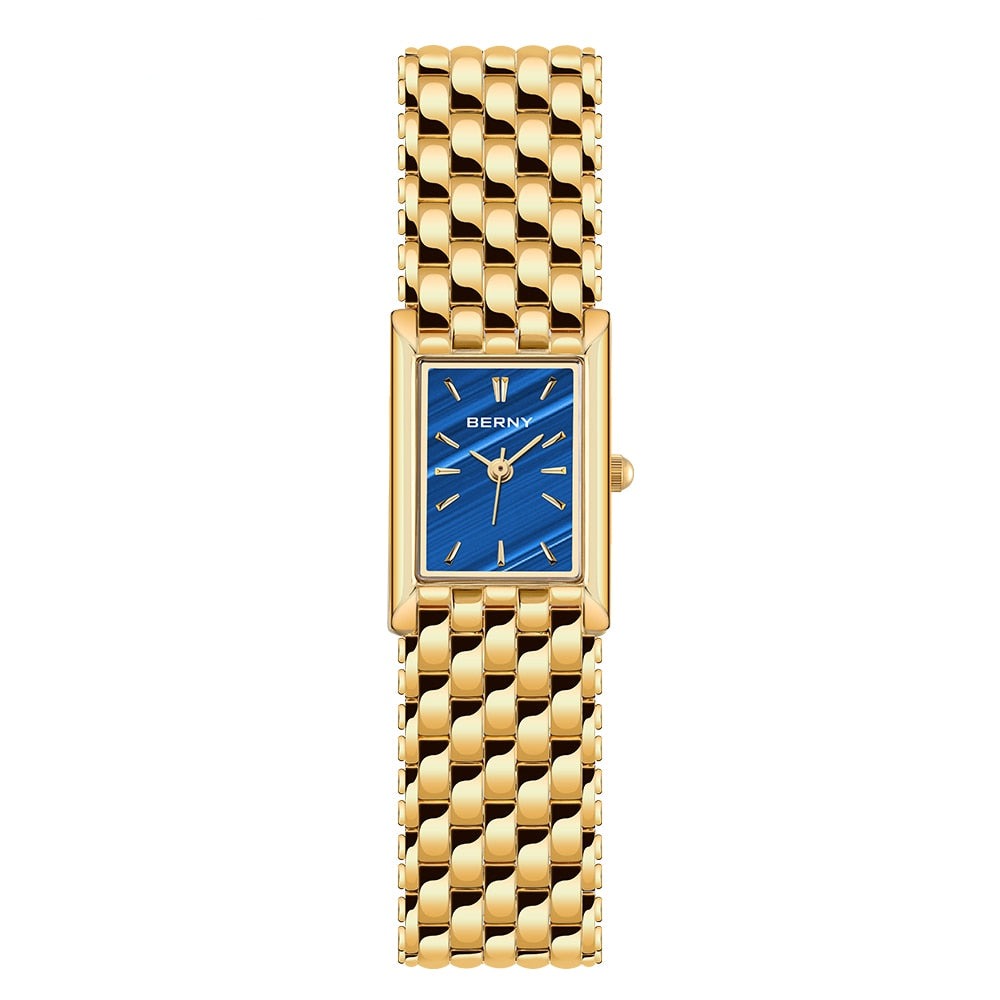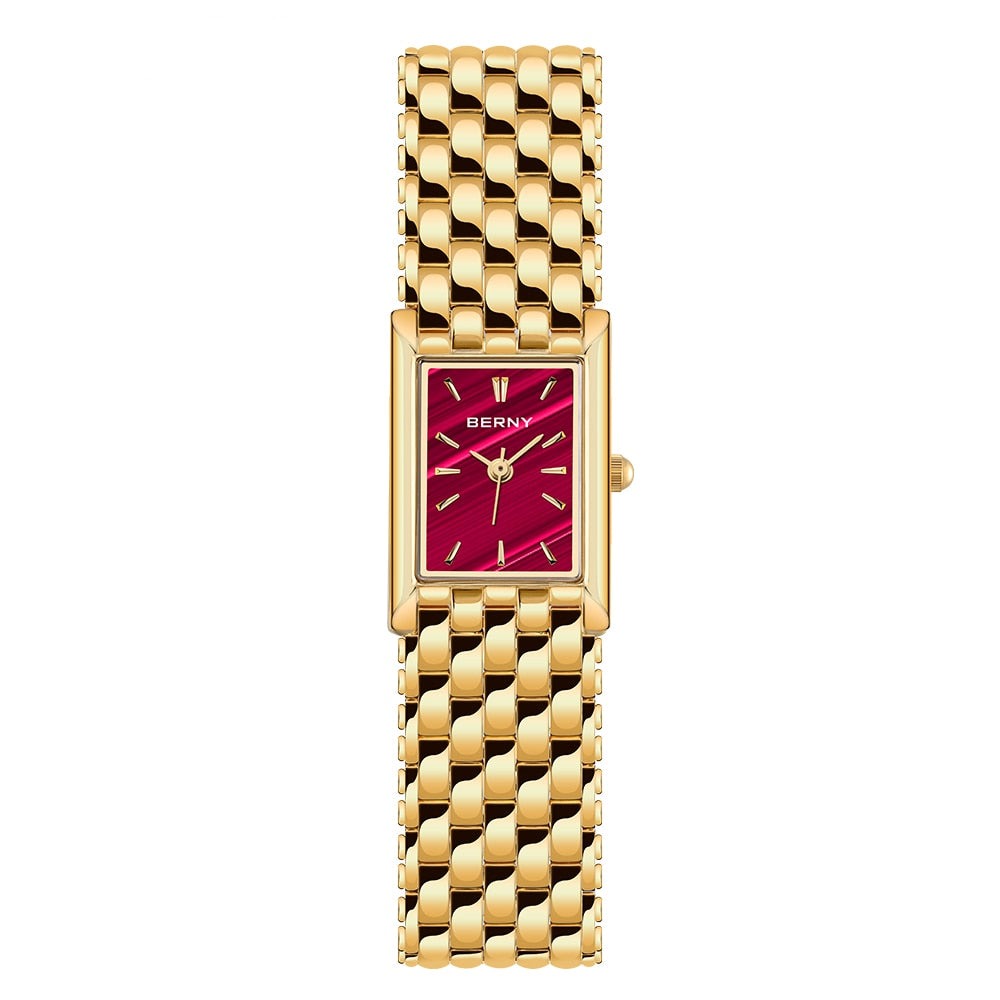 BERNY Women's Luxury Gold Watch 2166L is perfect for every occasion. This watch features a 27mm dial diameter and 16mm bandwidth, crafted with luxury gold for a timeless and attractive look. The slim design and lightweight feel make it comfortable to wear.