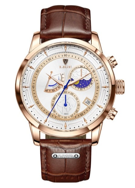 Discover a timelessly elegant combination of fashion and function with the Luxury Divers Moon Phase Watch. From its classic design to its reliable performance, this stylish accessory makes a bold statement of sophistication and precision. You'll love the dependability and style of this stunning watch - it's the perfect way to make a timeless impression.