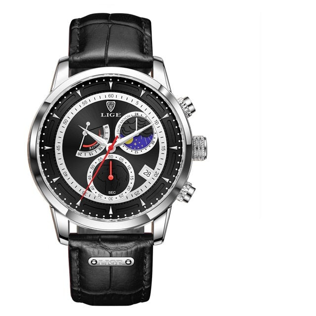 Experience the beauty of the night sky on your wrist with our luxurious sports chronograph watch, complete with a stunning moon phase display. Our timeless design allows you to show off your style while enjoying a reliable, precision-crafted timepiece. Make a statement, and add a touch of the stars to your look. Dare to dream?