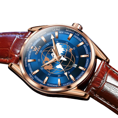Our Time Zone OLEVS 9926 Business Wristwatch is your perfect travel companion. Featuring incredible cities' time zone sapphire, this watch provides you with a precise view of the time across multiple global cities at a glance. Its durable construction and precise time-telling make it the ideal travel companion for business professionals on the go.