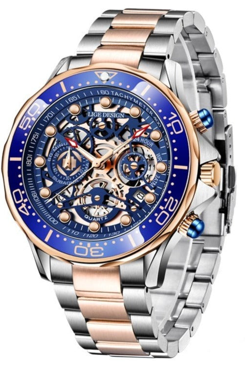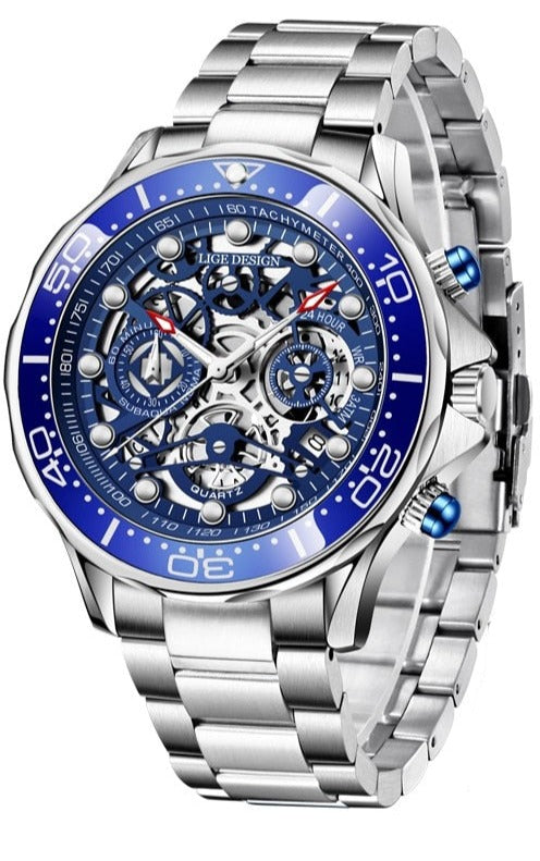 Showcasing modern artistry and timeless elegance, the Top Brand Luxury Business Watch 2022 features a transparent hollow display for a classic look. Its sophisticated, minimalist design is sure to make an impact and mark you out as a connoisseur of refined luxury.