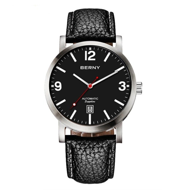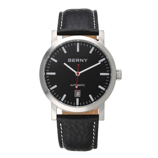 This unique business watch operates on self-winding mechanical movement. The watch is ideal for office or casual wear.